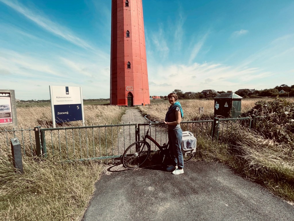 Uuden makeavesipumpun olisi määrä tulla tänään, joten emme arvanneet lähteä satamasta mihinkään vaan aloitimme uuden yhteisen harrastuksen, kannen irronneiden tiikkitappien vaihdon uuteen. Kahdestaan homma sujui joutuisasti ja vaihdoimme noin 20 kriittisintä tappia uusiin. Iltapäivään mennessä osasta ei ollut kuulunut vielä mitään, joten Tapio soitti osan tilanneelle satamamestarille. Osa oli kuin olikin tullut ja hän tuli tuomaan sen satamalle. Kiitokseksi järjestelyistä lahjoitimme hänelle varastoistamme viimeisen Hartwallin lonkeron. Lainasimme taas satamasta pyörät ja läksimme tällä kertaa pyöräilemään rannikkoa pitkin etelään kohti Lange Jaap majakkaa, joka on 63 m korkeudessaan Pohjanmeren korkein. Majakan juurelle päästiin, mutta sinne ei päässyt ylös, mistä Tapio ei ollut pahoillaan.