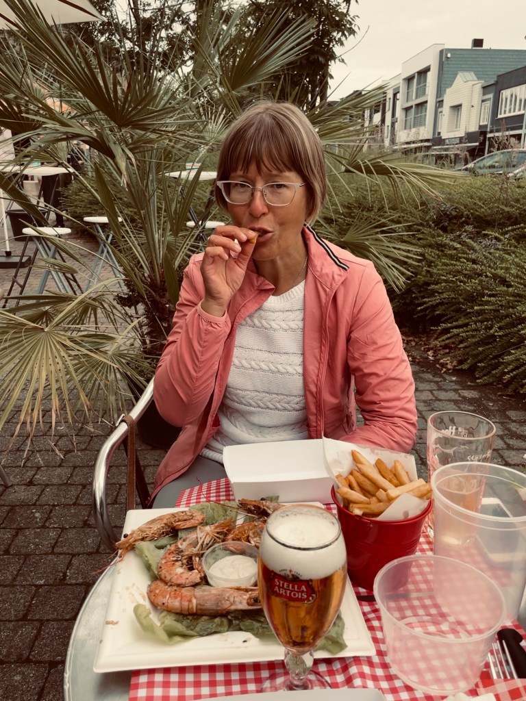 Loppumatka moottoroitiin tyynellä merellä ja otettiin vuorotellen nokkaunet. Zeebruggen satama oli vielä isompi kuin edelliset. Sataman edustalla meni vielä laivaväylä poikittain rannikkoa pitkin ja taas meitä kutsuttiin VHF:llä. Paikallinen VTS-keskus varmisti, että näimme pari tulossa olevaa rahtilaivaa ja että väistämme heitä perän puolelta. Itämerellä on aika selvää, että huviveneet aina väistävät rahtilaivoja, joten moinen holhoaminen tuntuu hiukan oudolta. Tällä kertaa satamaan sisään sai ajaa pelkkien merkkivalojen perusteella, siihen ei tarvinnut kysyä lupaa keneltäkään. Ajoimme useiden satama-altaiden läpi huvivenealtaaseen, jossa olikin kolme erillistä satamaa. Kysyimme paikkaa VHF:llä heti ensimmäisestä uusimmasta BZYC-satamasta, jossa satamamestari oli vastassa laiturilla ja sopiva aisapaikka löytyi. Sähkö, suihkut ja hyvä wifi kuuluivat hintaan, kahdesta yöstä sai pulittaa tällä kertaa 57 €. Maksu tehtiin laiturilla paikan edessä olevan QR-koodin avulla. Suihkut ja vessat olivat varsinaista luksustasoa. Vesiletkuja ei enää täällä ole, pitäisi hankkia oma letku vesitäydennyksiä varten. Illalla kävimme kävelyllä sataman ympäristössä. Tällä kertaa satamamakasiinien takana oli rivissä kalaravintoloita, joista yksi, vähän kaksimielisesti nimetty Octo Pussy näytti olevan erityisesti paikallisten suosiossa. Niinpä mekin menimme sinne ja tilasimme gambas ranskalaisilla. Hyvää oli kaikessa yksinkertaisuudessaan. Sitten pitikin kiirehtiä takaisin veneelle katsomaan Euro 2020 finaalia Englanti-Italia. Sitten täytyykin odotella seuraavaksi olympialaisten alkamista.