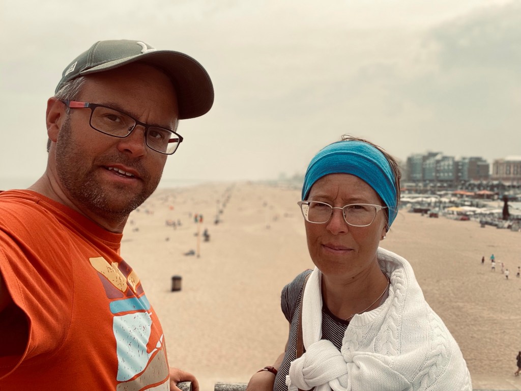 Jatkoimme rannikkoa pitkin ja näimme paikallisen dyynialueen, jonka läpi meni paljon pyöräreittejä. Valitsimme Den Helderin keskustaan menevän reitin, joka oli hiekkainen ja kapea ja kulki lehmälaitumien läpi. Pyörällä pääsi kuitenkin polulla hyvin ja yhtään lehmää ei nähty. Kaupungilla käytiin limuilla kävelykadun terassilla ja ruokakaupassa. Tällä kertaa löysimme jonkin lähiömarketin, jossa oli parempi valikoima, mutta kirjavampi asiakaskunta. Illalla tehtiin kaupasta löytyneistä valmiista pitsapohjista pitsat. Satamaan oli tullut Kielin kanavassa tapaamamme ruotsalainen yksinpurjehtijamies (hän otti meistä kanavapostauksessa ja Instagramissa olleen yhteiskuvan), jonka kanssa kävimme vähän juttelemassa ennen nukkumaan menoa.