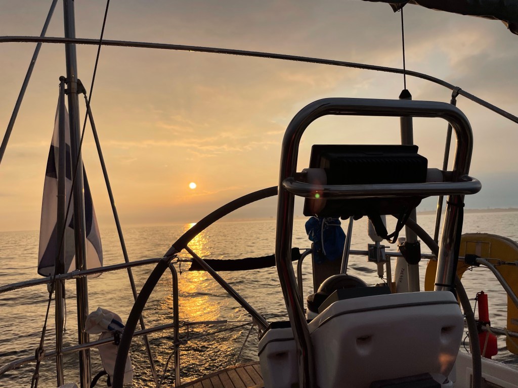 Ja herätykset sen kuin aikaistuvat, nyt kello soi 4:30. 2000 askeleen vessareissun ja lähtövalmisteluiden jälkeen köydet irtosivat vajaan tunnin päästä ja taas piti pyytää Port Controllilta lupa mennä satama-altaaseen ja ulos. Lupa tuli taas heti, hiljaista oli vielä satamassa. Merellä näkyi kyllä jo muutamia purjeveneitä, mutta tuulta ei ollut nimeksikään.