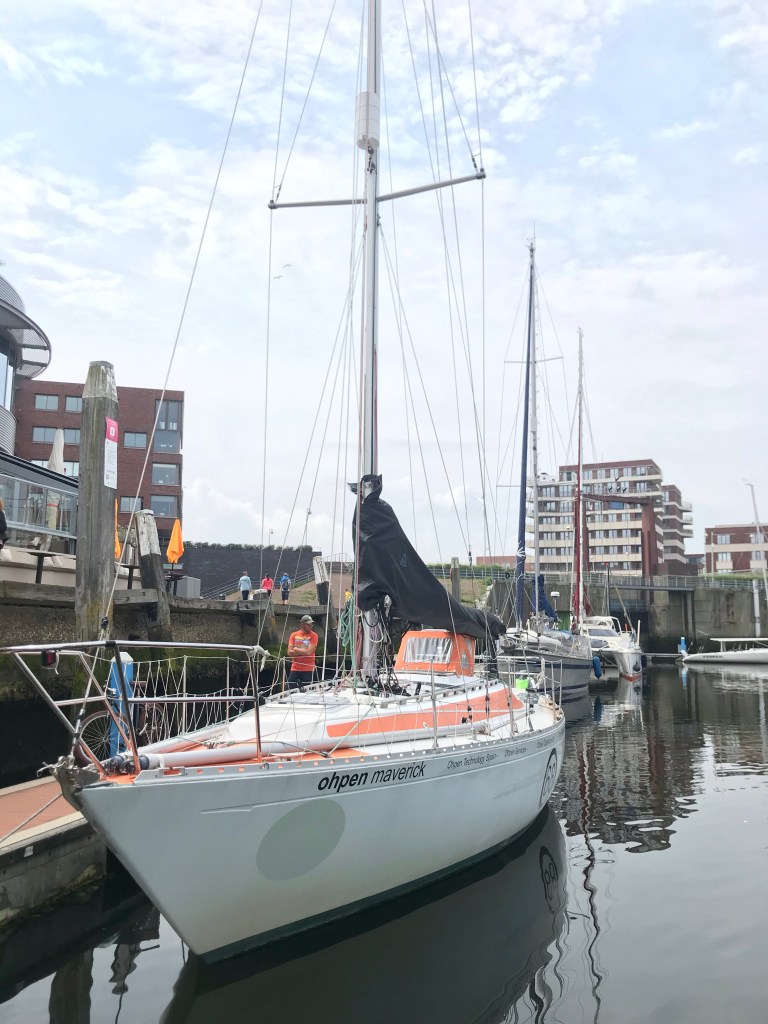 Aamupala syötiin veneessä ja tehtiin pieniä venehommia mm. pestiin kansi. Huomasimme, että samassa laiturikompleksissa meidän kanssa oli 2018 Golden Globe Raceen Tapio Lehtisen kanssa osallistuneen ja kisassa toiseksi tulleen hollantilaisen Mark Slatsin vene Ohpen Maverick, jolla hän kyseiseen kilpailuun osallistui. Vene ei näyttänyt kovinkaan merikelpoiselta vaan aika pieneltä ja rähjäiseltä.