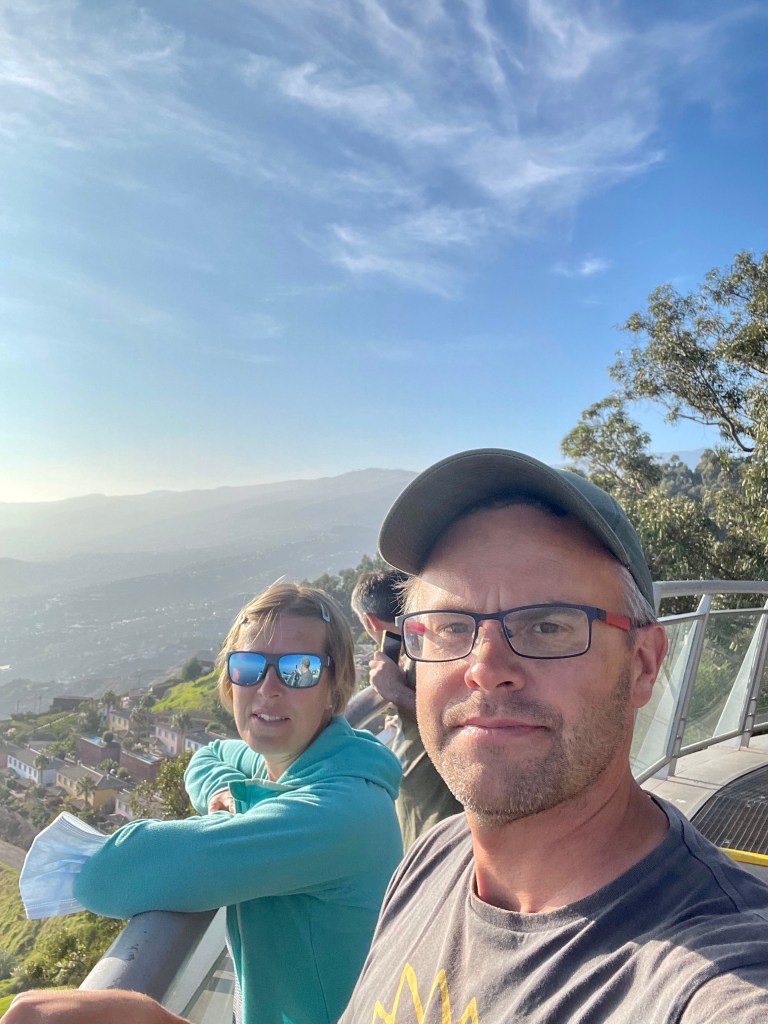 Päivälle oli suunniteltu raskaan sarjan turismia, joten liikkeelle lähdettiin hyvissä ajoin klo 8:30 jälleen vuokra-Renaultilla. Tällä kertaa Tapio pääsi kuskiksi. Olimme edellisenä iltana suunnitelleet reittiä ja paikkoja, joita haluamme nähdä päivän aikana. Suuntasimme ensimmäisenä Cabo Girãon näköalapaikalle Madeiran etelärannikolla, jossa sijaitsi yli 580 m korkean kalliojyrkänteen päällä skywalk, jossa pääsi katsomaan pudotusta jyrkänteen reunan yli rakennetun lasilevyn päältä. Kyseessä on Wikipedian mukaan Euroopan korkein Skywalk. Ehdimme pakalle juuri sopivasti ennen suurempaa turistiruuhkaa. Pudotus ei näyttänyt kovin hurjalta, koska lasilevy oli jo kulunut ja siitä tuskin näki läpi.