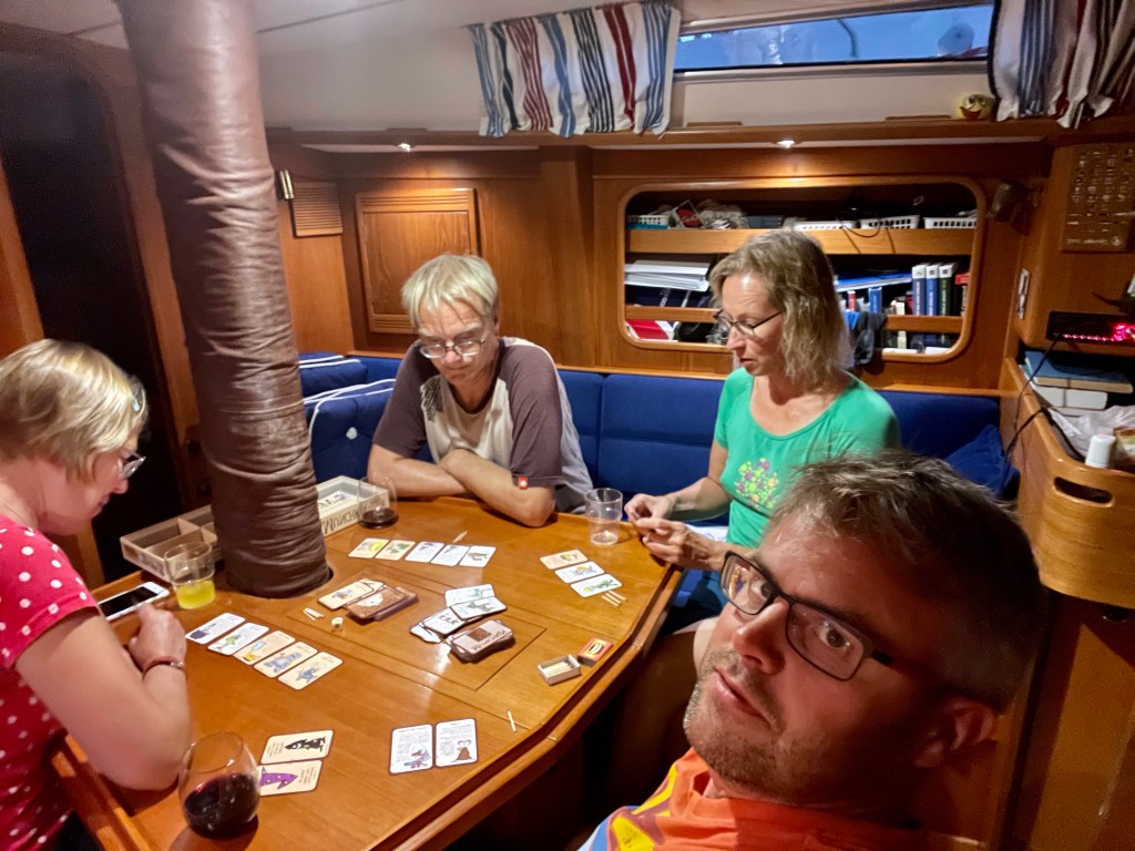 Illalla kokkailimme Zeldalaisten kanssa yhteistyössä pesto-parmesan-kanaa, parsakaalia ja bataattia. Olimme myös sopineet pelailevamme Zeldalaisten lahjaksi saamaa Muchkin-peliä, jota kukaan meistä ei ollut aiemmin pelannut. Kyseessä olikin varsin haastava peli, jossa tarkoituksena oli taistella monstereiden kanssa. Lueskelimme aikamme ohjeita ja pelasimme yhden harjoituskierroksen, jonka Hessu voitti. Aloimme olla kypsiä jatkamaan matkaa kohti Kanariaa, mutta säätiedotus lupasi kovaa ja puuskaista tuulta pariksi päiväksi, joten emme pääsisi vielä lähtemään ja luvassa olisi vielä ainakin yksi satamapäivä. Madeiraan kuuluu Porto Santon ja Madeiran pääsaaren lisäksi vielä kaksi muuta saariryhmää, Desertassaaret ja Selvagenssaaret. Saarilla käydäkseen pitää hakea erikseen lupaa, koska molemmat ovat luonnonsuojelualueita. Vähän harkitsimme, olisimmeko hakeneet lupaa, mutta emme sitten lopulta jaksaneet. Jätetään seuraavalle reissullekin jotain nähtävää.