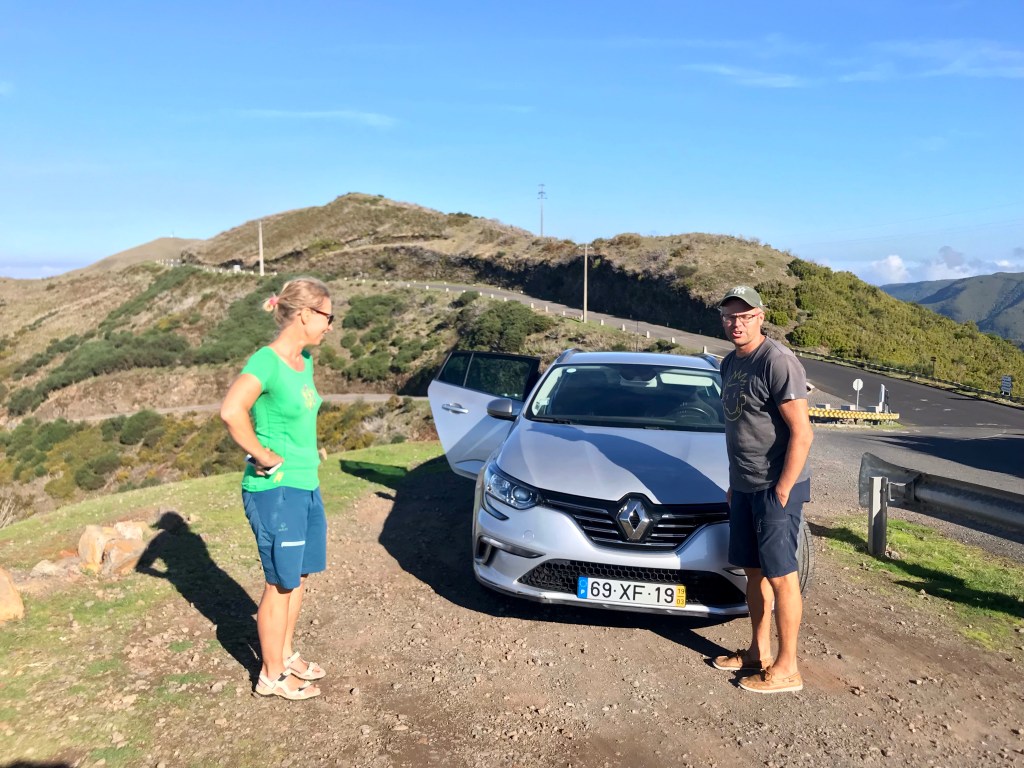 Tänään iltapäivällä saisimme sataman järjestämän vuokra-auton pariksi päiväksi käyttöön, jotta pääsisimme kiertämään saarta ja katsomaan turistikohteita. Autovuokraamon nimi on virkistävästi ja suoraan Simpson-tyyliin Happy Cars. Aamupäivällä oli vielä aikaa siistiä venettä ja pestä pyykkiä sataman kovaäänisellä pesukoneella. Iltapäiväksi olimme suunnitelleen tekevämme kävelyn Madeiran korkeimmalle vuorelle Pico Ruivolle, jonka huipulle 1862 m korkeuteen oli rakennettu vaellusreitti. Auton saatuamme siis kiipesimme siihen ja Hessu ajoi pelottomasti noin tunnin matkan kiemurtelevia teitä pitkin saaren pohjoisosan kautta vaellusreittimme lähtöpaikalle.