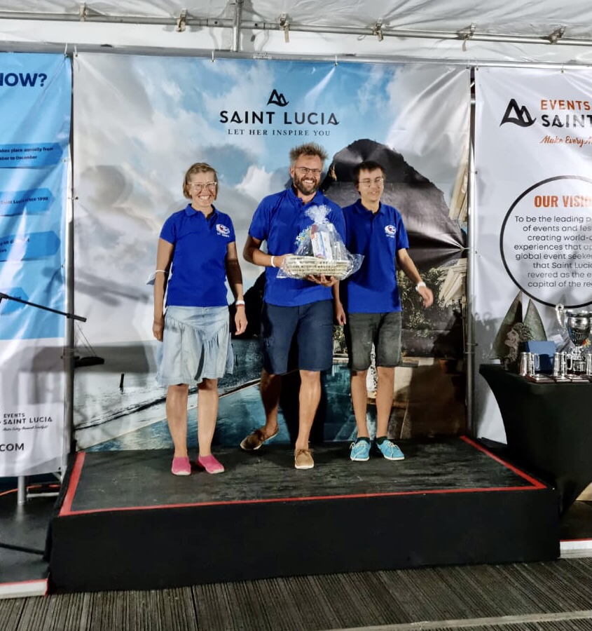 Varsinaisissa kisatuloksissa olimme ihan OK luokassamme 10/18 ja kokonaistuloksissa 42. Ehkä hiukan nolo kategoria voittaa, mutta saimme palkinnoksi herkkukorin (jälleen rommia). Palkintojenjaon välissä ja lopussa laitureilla kierteli paikallisia esiintyjäryhmiä tanssimassa, kävelemässä puujaloilla ja tekemässä tulitemppuja. Ohjelman loputtua nautiskelimme ARC:n tarjoamat eväät ja palkintokorissa olleen punaviinipullon. Sen jälkeen läksimme laitureille ihmettelemään juhlahumua.