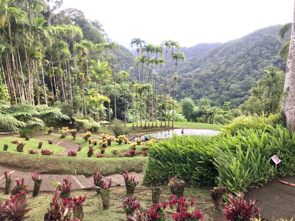 Päätimme ajella saaren keskellä kulkevaa tietä pitkin ja poiketa matkalla vielä Balata Gardeniin, saaren parhaaksi nähtävyydeksi rankattuun kasvitieteelliseen puutarhaan. Puutarhassa kuljettiin määrättyä reittiä pitkin eri kasvialueiden poikki. Polku polveili mäenrinteessä ja alueella oli myös useita lampia, joissa oli lumpeita ja kaloja. Osan matkaa pääsi kulkemaan puihin kiinnitettyjä lavoja ja riippusiltoja pitkin ja ihailemaan puutarhaa lintuperspektiivistä.