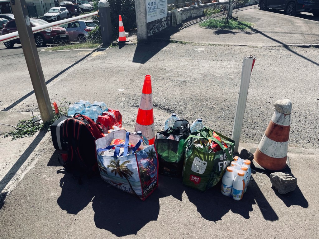 Le Marinista ajoimme edelleen etelään, saaren hienoimmaksi nimetylle rannalle, Les Salinakselle. Ensin suuntasimme lounaalle rantaravintolaan. Tällä kertaa Maria tilasi kalaa, Tapio katkarapuvartaita. Ruoka oli ihan OK. Ruuan jälkeen kävelimme pitkän rannan melkein päästä päähän ja Maria kävi uimassa. Kävimme myös pienellä kävelyllä läheiselle suolalammelle rakennetulla luontopolulla, jossa näimme kahlaajalintuja ja rapuja. Seuraavaksi ajoimme lähellä olevaan Saint Annen pikkukaupunkiin, jonka edustalla sijaitsi yksi saaren suosituimmista ankkuripaikoista. Ajelimme kylän läpi muutamana kertaan ja katselimme paikkoja ennen paluuta päätielle. Valoisaa aikaa oli vielä jäljellä, mutta totesimme, että emme enää ehdi eläintarhaan tai kokeilemaan uudelleen kenkien kanssa Mount Peléen vaelluspolkua, joten ajelimme saaren keskiosassa lenkin maisemia ihaillen ja suuntasimme sitten matkan varrella olevaan isoon Carrefouriin ostoksille. Kaupassa vierähti tovi jos toinenkin kun etsimme ja keräilimme mukaan veneellä tarvittavia säilykkeitä ja kuivatuotteita. Sulkemisaika alkoi jo olla lähellä, kun menimme kassajonoon. Olimme keräilleet reilulla kahdella sataa ostoksia mukaan, mutta kassalla odotti ikävä yllätys. Mikään neljästä pakkikortistamme ei toiminut depit eikä credit puolella eikä kummankaan korteilla saanut myöskään rahaa ulos viereisestä käteisautomaatista. Käteistä ei myöskään ollut tietenkään mukana tarpeeksi kattamaan niin valtavia ostoksia. Myöskään Apple Pay maksut eivät menneet läpi. Aikamme myyjien ja ilmeisesti myymäläpäällikön kanssa asiaa ihmettelimme. Pankista ei tietenkään saanut ketään kiinni, koska Suomessa elettiin täyttä yötä. Spekulaatioksi jäi, oliko pankilla mahdollisesti menossa jokin korttikatko tai päivitysajo, jonka vuoksi yhteydet eivät juuri sillä hetkellä toimineet. Nettipankissa ei kylläkään ollut asiasta mitään mainintaa. Olimme maksaneet Martiniquella kortilla kyseisenäkin päivänä jo useampia kertoja ongelmitta. Kauppakeskus meni kiinni ja jäljellä olimme enää me, meitä palveleva henkilökunta ja vartijat. Ei siinä muu auttanut, kuin myöntää, että maksu ei onnistu ja joudumme jättämään ostokset kauppaan. Lannistuneina ajoimme takaisin satamaan. Auto pitäisi palauttaa huomenna aamulla, joten ostokset pitäisi saada hoidettua ilman sitä. Iltaruuaksi kokkaaminen jäi puolitiehen vallitsevassa lamaantuneessa ilmapiirissä. Ainoastaan ylikypsäksi päässeistä banaaneista tehtiin karamellisoituja banaaneja.