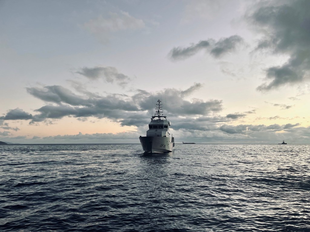 Juuri samaan aikaan kun olimme nostamassa ankkuria, suomalainen S/Y Sundance II moottoroi ohitsemme ankkuroitumaan lähelle kaupunkia. Lähetimme heille viestin, että olemme valitettavasti juuri lähdössä. He olivat tulossa myös Iles des Saintesille, joten ehkä tapaamme sitten siellä. Kun ankkuri oli saatu ylös, nostimme ison toiseen reiviin ja avasimme genuan kokonaan. Luvassa oli Predictwindin mukaan varsin navakkaa tuulta saarten välissä. Alkumatkan saimme kuitenkin taittaa heikkenevässä sivutuulessa Martiniquen rantaa myötäillen. Maria vetäytyi pian sisään kokkaamaan illalliseksi chorizopastaa. Tapio seuraili samalla, kun Ranskan rannikkovartioston iso lähes sotalaivaa muistuttava alus risteili lähistöllä ja tuli lopulta aivan takaamme viereen tuulen alapuolelle. Pian he kutsuivatkin meitä VHF:llä, onneksi hyvällä englannilla. Ranskan vääntäminen VHF:ssä olisi kyllä ollut jo liian haastavaa. He kyselivät muutamia kysymyksiä mm. mistä olimme tulossa, mihin olimme menossa, montako meitä oli veneessä, oliko omistaja mukana ja olimmeko viettäneet koko kauden Martiniquella. Maria vastaili kysymyksiin ja ilman sen suurempia he toivottivat meille hyvä matkaa ja jatkoivat eteenpäin.
