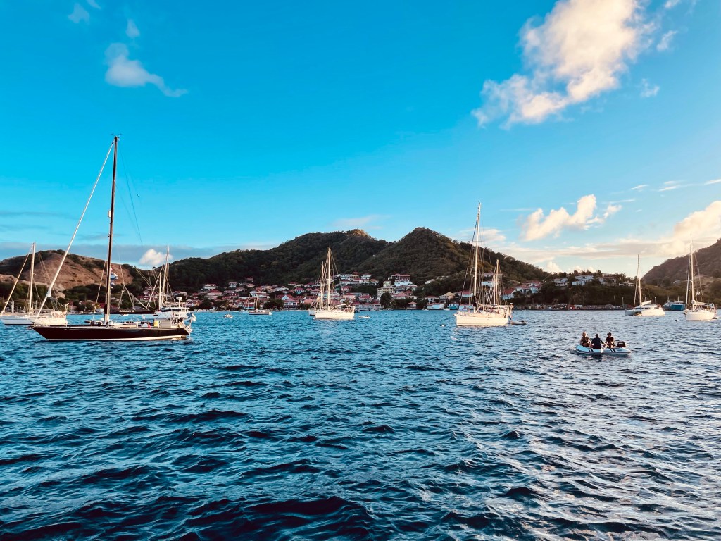 Nyt alkoi tuntua siltä, että olisi taas aika jatkaa matkaa. Olimme lueskelleet menneinä päivinä paljon eri saarten tuloprotokollia näin korona-aikaan ja tulimme siihen tulokseen, että jätämme Dominican vaikeiden ja kalliiden muodollisuuksien takia väliin siitä huolimatta, että sitä ovat monet suositelleet. Niinpä edessä olisi taas yön yli purjehdus Guadeloupelle, jossa päätimme jäädä itse pääsaaren eteläpuolella oleville Iles des Saintes pikkusaarille aluksi. Aamupäivä kulutettiin uiden, lueskellessa ja valmistellessa venettä lähtöön. Olimme ruotsalaisilta kuulleet, että saarten välillä ei tarvittaisi lähtö- ja tulomuodollisuuksia, koska molemmat maat kuuluivat Ranskalle. Tämä tosin osoittautui myöhemmin virheelliseksi tiedoksi. Niinpä emme enää menneet maihin Saint-Pierreen vaan nostimme ankkurin klo 17 aikaan.
