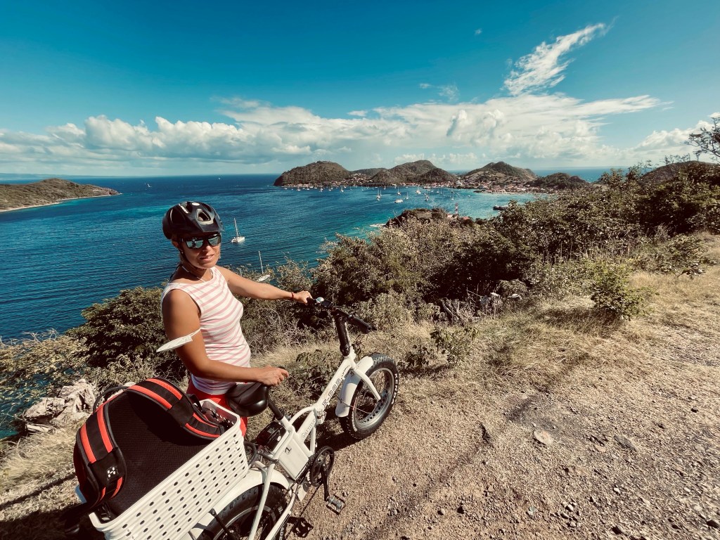 Aamulla nukuimme rauhassa niin pitkään kuin nukutti ja läksimme ilman aamupalaa katsomaan kaupunkia. Ensin kävimme maksamassa poijupaikasta viikoksi LSM:n toimistossa. Sen jälkeen kiertelimme hiukan mitä viihtyisimmän näköisellä kylänraitilla ja etsimme paikkaa, josta saisimme aamupalaa. Lopulta istuimme jollalaiturin lähellä olevaan kahvilaan ja tilasimme kahvit, Tapio otti paninin ja Maria croissantin, Ranskassa kun ollaan edelleen. Ihmiset tuntuvat täällä puhuvan hieman paremmin englantia kuin Martiniquella ja olevan oikein ystävällisiä. Kylässä on yksi rantaa pitkin kulkeva pääkatu, jonka varrella on vieri vieressä erilaisia ravintoloita ja kauppoja. Turisteja on paljon, he tulevat saarelle ilmeisesti lautoilla Guadeloupelta. Kylässä on myös pari leipomoa, kolme ruokakauppaa ja yksi taloustavaroita ja työkaluja myyvä kauppa. Kävimme siellä pistäytymässä, mutta valitettavasti niittipyssyä ei valikoimista löytynyt, vaikka paljon kaikkea muuta olikin. Ihmiset tuntuvat kulkevan saarella pääasiassa skoottereilla ja sähköpyörillä. Poikkesimme yhdessä sähköpyöriä vuokraavassa liikkeessä ja vuokrasimme seuraavaksi päiväksi pyörät. Sitten menimme lounaalle lauttalaiturin vieressä olevaan Coq d’Or nimiseen ravintolaan. Ruokapöydät oli sijoitettu viihtyisästi toisen kerroksen terassille, josta oli näköala lauttalaiturille ja kylän keskusaukiolle. Täälläkin sai esittää koronapassin ennen ravintolaan menoa kuten Martiniquella. Ravintolassa tarjottiin lounaalla menua, johon kuului alkuruoka, pääruoka ja jälkiruoka 25 €:lla. Kaikki ruuat sai valita useamman vaihtoehdon joukosta. Alkupalat olivat lähes kaikki eri kastikkeissa olevia kylmiä kalaruokia, pääruokana oli joko haita, tonnikalaa tai nautaa ja jälkiruokana taas useita vaihtoehtoja kuten tiramisua ja suklaafondantia. Tapio valitsi pääruuaksi tonnikalaa, Maria nautaa viherpippurikastikkeessa. Annokset oli aseteltu kastikekiemuroilla koristelluille lautasille ja lihat ja kalat oli moitteettomasti kypsennetty. Maha tuli täyteen. Ruokaseurana oli parvekkeen kaiteella vaelteleva pikkuinen paikallinen sisilisko.