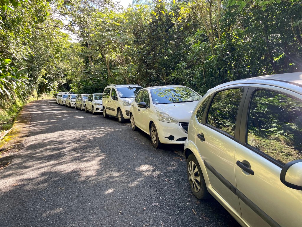 Kun pääsimme autolle, jalat olivat vain hiukan väsyneet ja olimme oikein tyytyväisiä vaellukseen. Kulkemamme reitin pituudeksi tuli 7,53 km ja nousua tuli yhteensä 857 m. Kun saimme hikiset vaatteet ja mutaiset kengät vaihdettua pois, jatkoimme autolla pitkin Guadeloupen länsirannikkoa kulkevaa tietä pohjoiseen tarkoituksena ajaa saaren halki viidakkotietä N23, jota kehuttiin saaren kauneimmaksi tieksi. Matkalla pohjoiseen ajoimme myös seuraavan purjehduskohteemme, Pigeon Islandin ja Jacques Cousteaun nimeä kantavan luonnonsuojelualueen ohi. Eräässä satamakaupungissa matkamme tyssäsi varsin erikoisen syyn takia. Tie oli tukossa, koska vastaamme tuli hautajaissaattue. Edellä kannettiin isoa vainajan valokuvaa, jonka perässä seurasi pitkä kulkue. Kuvan takana kulki ihmisiä riveissä kantamassa kukkalaitteita. Heidän takanaan seurasi kävelyvauhtia ruumisauto, jonka takaovi oli auki. Autoa seurasi varsinainen saattoväki mustissa vaatteissaan kävellen ja nenäliinoilla silmiään pyyhkien. Mieleen tuli lähinnä Bond-elokuvassa nähty hautajaissaatto. Hautajaisväki ei tosin tässä tapauksessa soittanut ja laulanut. Odotimme tiensivuun pysähtyneenä saattueen ohikulkua ja pitihän siinä hattu ottaa pois päästä itsekin. Hetken kuluttua pääsimme jatkamaan matkaa ja ajamaan suunnitelmien mukaan viidakkotielle.
