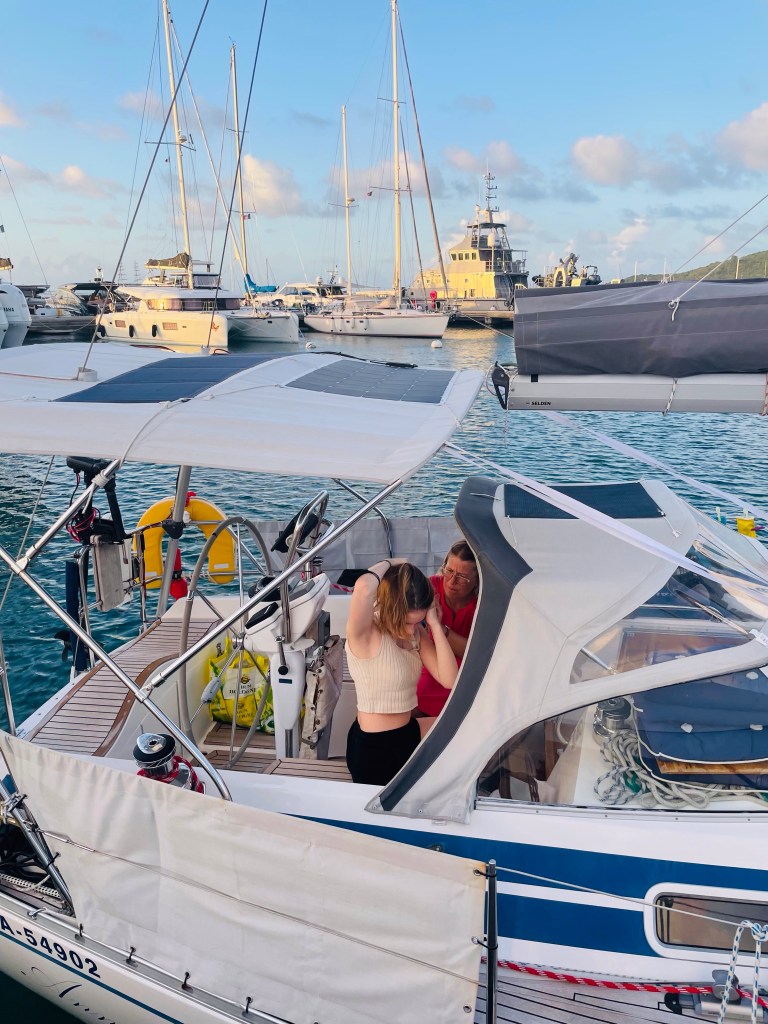 Tapion sisko Niina ja hänen nuorin tyttärensä Henriikka ovat tulossa vieraiksemme hiihtolomaviikoksi, joten meidän oli nyt aika jättää Guadeloupe taa ja suunnata yön yli purjehduksella Saint Martinille, jonne he saapuvat 18.2, mikäli korona ei aiheuta yllätyksiä. Matkaa tulisi noin 130 Nm eli pyöreästi luvatuilla tuulilla olisi luvassa hiukan vajaan vuorokauden purjehdus. Mitään testauksia ei siirtymän vuoksi tarvita, kun olimme molemmat kolmesti rokotettuja. Saint Martin on siinä mielessä erikoinen kohde, että puolet saaresta kuuluu Ranskalle ja puolet Hollannille. Hiukan oli epäselvää, mitkä ohjeet koskivat mitä puolta saaresta. Lopulta täytimme edeltävästi netissä terveysselvityksen, johon liitettiin rokotustodistukset. Mahdollisesti tämä olisi ollut tarpeen vain Hollannin puolelle purjehtiville, mutta ei ollut iso homma. Erikoista järjestelyissä on se, että maitse ja kumiveneellä saa joka tapauksessa saarella vapaasti siirtyä puolelta toiselle ilman mitään kontrollia. Vene kannattaa kuitenkin pitää Ranskan puolella saarta byrokratian minimoimiseksi näin korona-aikaan.